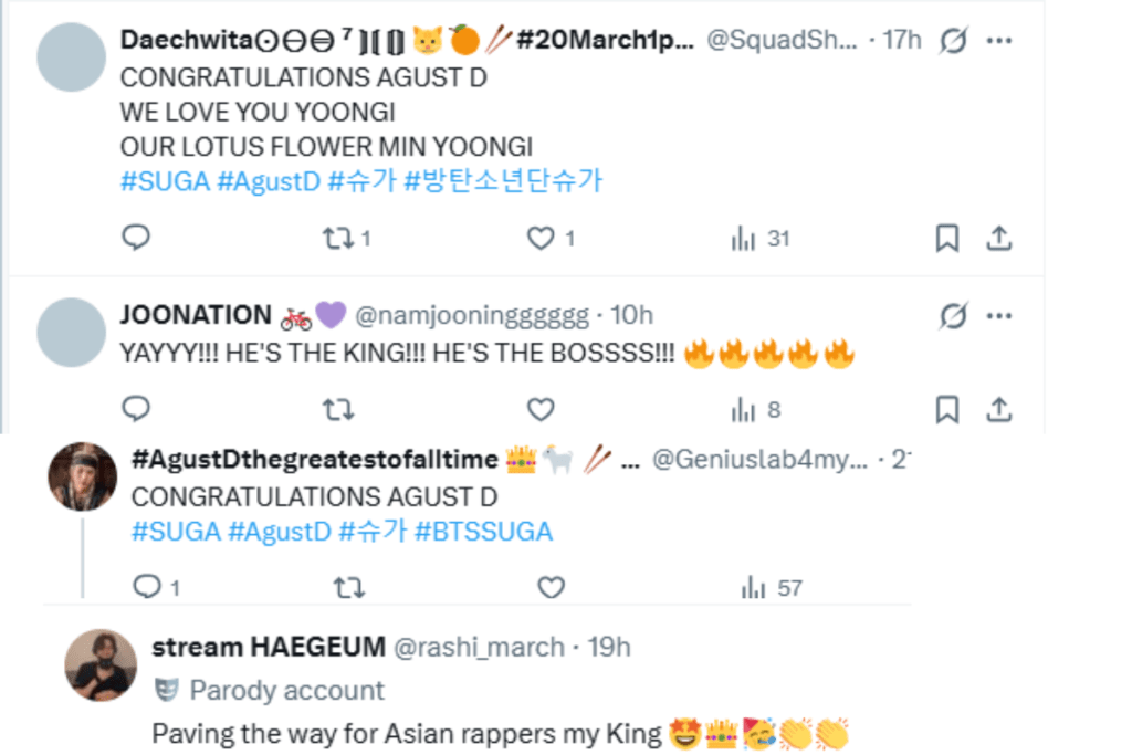 Following the news, ARMY and hip-hop fans celebrated across social media. They used hashtags like #SugaDDaySpotifyRecord and #AgustD1Billion. Fans frequently shared the sentiment that “Yoongi is that artist.” This reflects deep pride in his transition from an “idol rapper” to a respected hip-hop icon. Experts note that his success is a “definitive victory” for Asian representation.